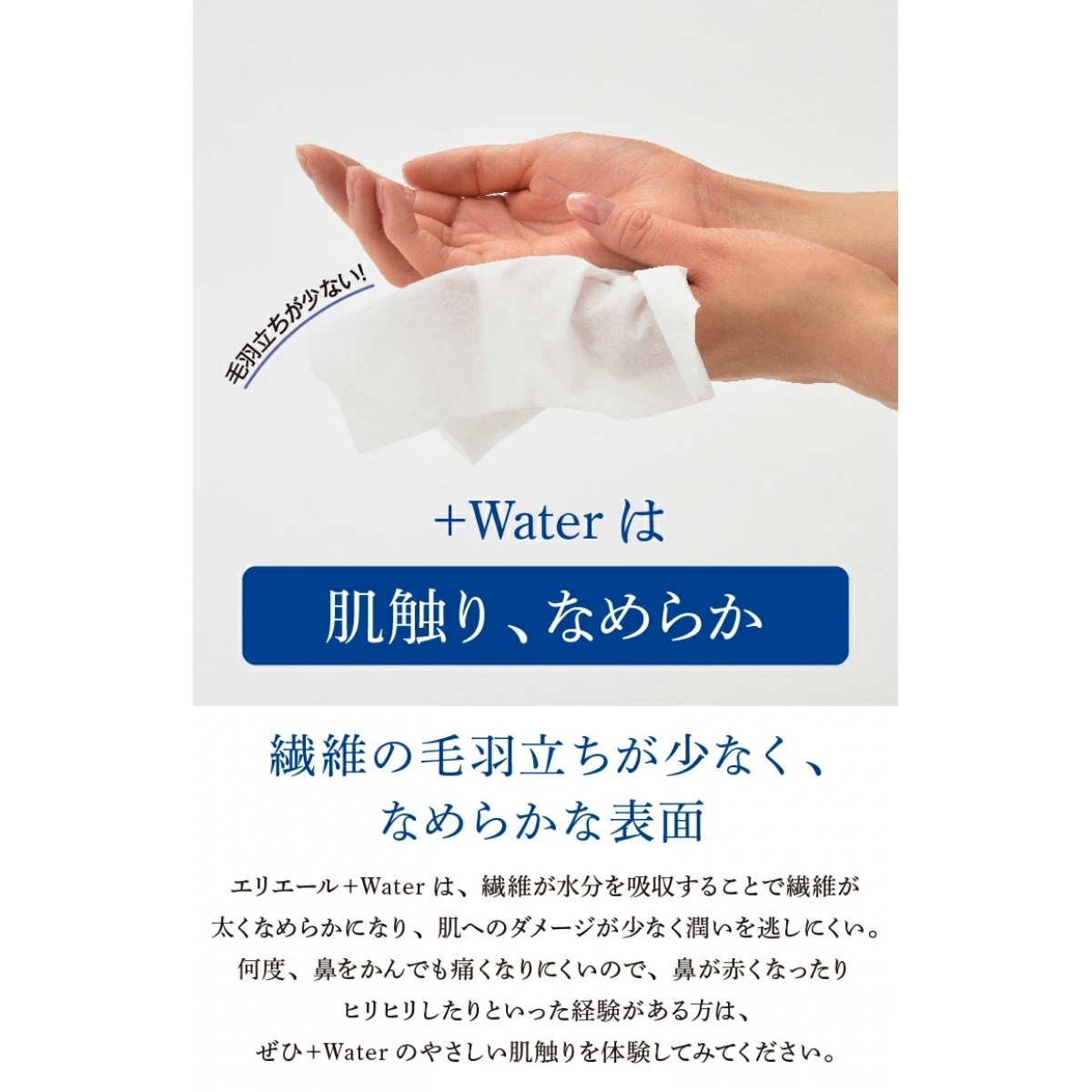 - Elleair + Water is not a wet tissue.